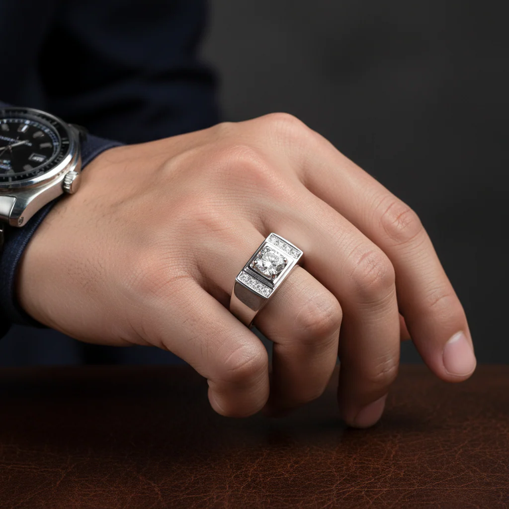 A stunning 1.0 carat round diamond wedding band crafted in solid 925 sterling silver. This men's ring features a lab-created diamond that sparkles brilliantly while offering exceptional value. Timeless, durable, and designed to be cherished for a lifetime. loves you.