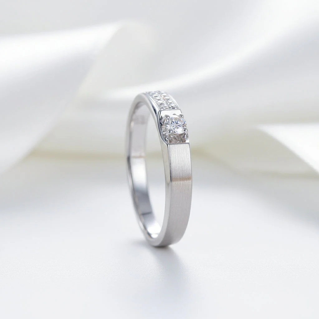 14k White Gold Wedding Band Natural Diamond