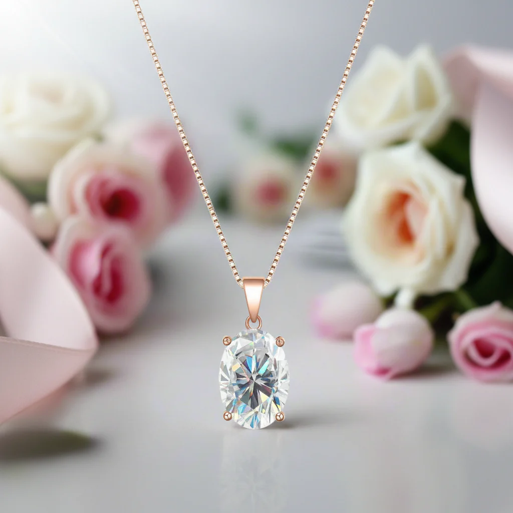 Indulge in luxury that will stand the test of time. Crafted with precision and care using ethically sourced materials. Featuring a stunning certified Moissanite oval cut stone at 8ct, this pendant is available in various metal types and stamped with quality assurance. Let this exquisite piece elevate your style and add a touch of elegance and sophistication to any outfit.