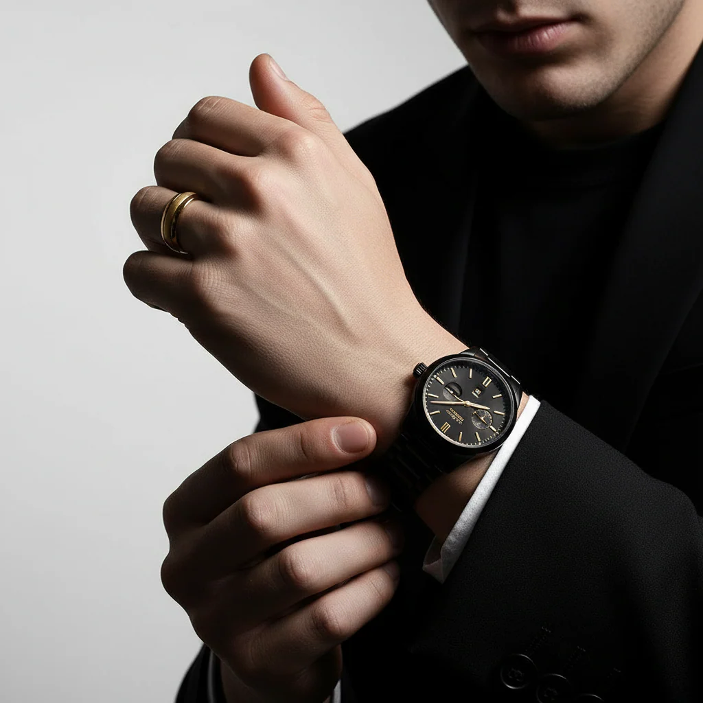 Engineered for the man who demands both durability and refinement, this tungsten carbide wedding band stands up to life's demands without sacrificing style. The frosted surface paired with gold-plated detailing creates a sophisticated aesthetic that feels both contemporary and timeless. At 8mm wide, it makes a confident statement on the hand while remaining comfortable for all-day wear. A ring built to last as long as your commitment.