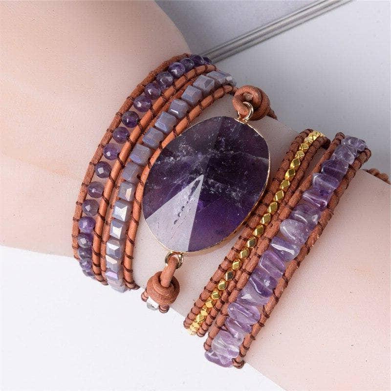 Experience the mesmerizing beauty of our Amethyst & Crystals Bohemian Bracelet, crafted with genuine amethyst and crystals, leather, and alloy using full handmade techniques. Discover the powerful energy and unique design of this bracelet that will elevate your style and bring positive vibes to your everyday life!