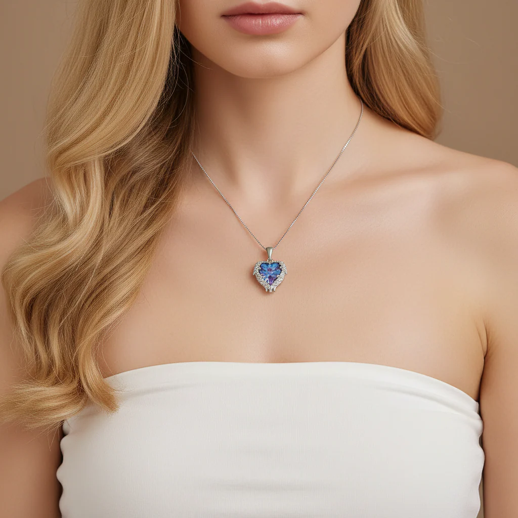 Blue Crystal Angel Wings Heart-Shaped Women's Necklace