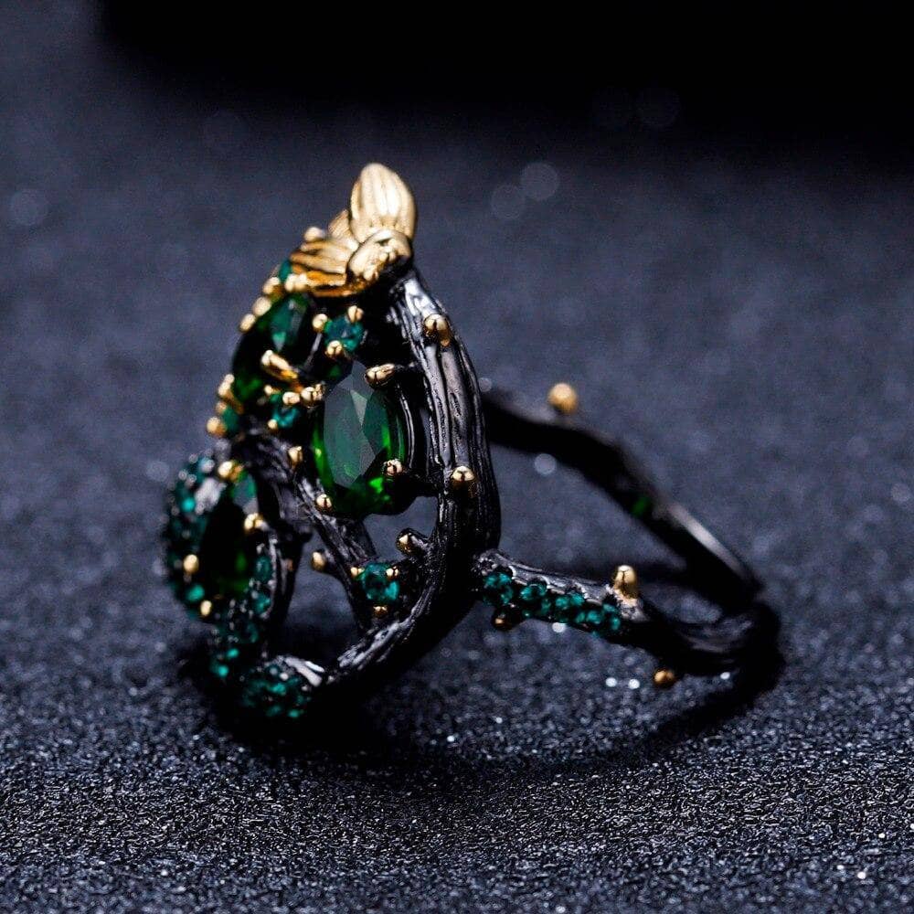 -70%Handmade Chrome Diopside Gemstone Gold Bee on Branch Rings—