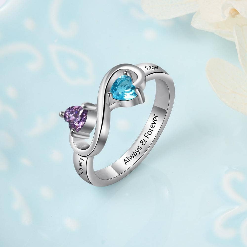 Infinity Ring Custom Heart Birthstone & Name Ring