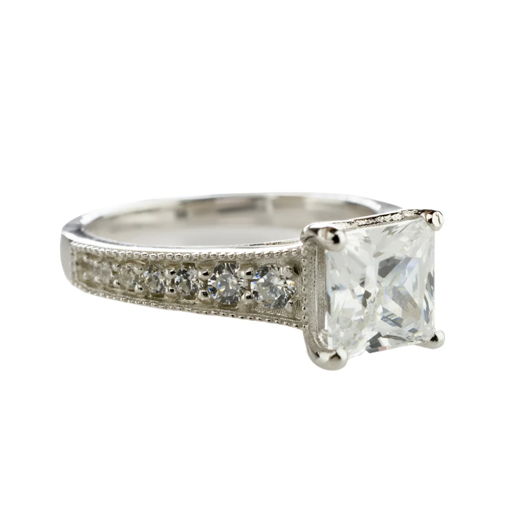 Crafted with exquisite precision, this Princess Cut Diamond Solitaire Engagement Ring is designed to withstand the test of time. Made from ethically sourced materials, including silver and platinum with a white gold plating, it features a stunning created diamond in a 1-carat princess cut. With a total carat weight of 1.60, this ring is the epitome of elegance and luxury.