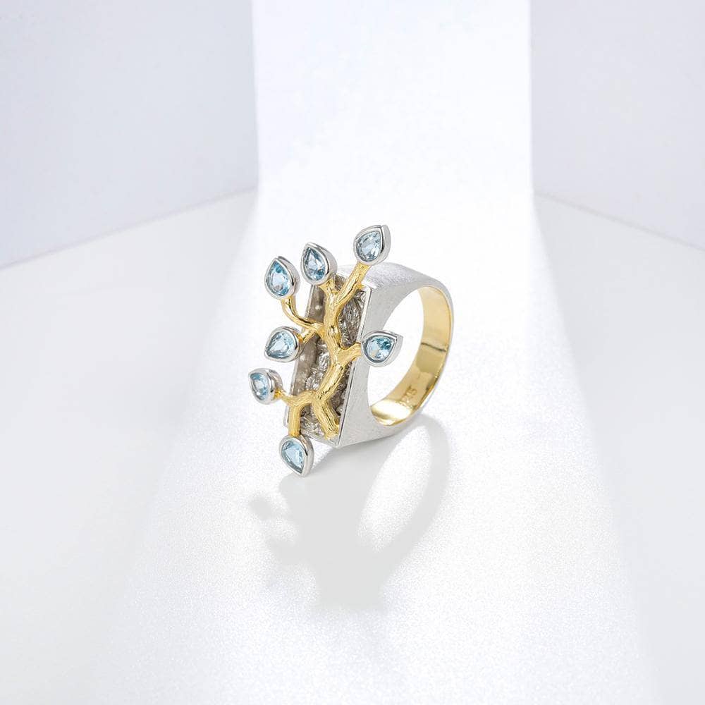 Two Tone Madagascar Forest Natural Swiss Blue Topaz Ring