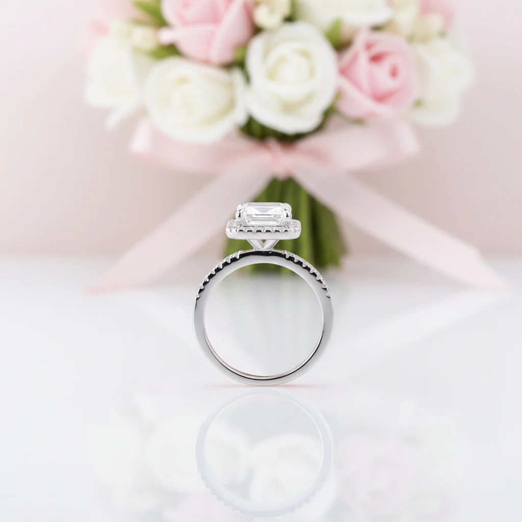 White Gold Classic Halo Emerald Cut Engagement Ring